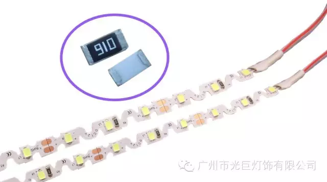 最后是电阻;广州市光巨光电技术有限公司的S型灯带采用风华高科软灯条专用1206贴片电阻,精密度好、粘力强、不易脱落,可负载的功率和耐压性都比常规灯带所使用的0805电阻要好很多,杜绝了因为电阻原因造成的不亮、频闪等问题。