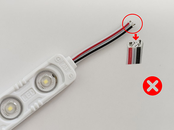 有些发光字或者灯箱在点亮一段时间后,会出现短路烧线的情况,大家可能第一反应是LED灯的质量有问题,其实很多时候是因为线没有处理好或者补电方式有错误操作而导致的轻微短路;轻微短路不会影响电源供电,LED灯也能正常点亮,待点亮一段时间后才会被发现;轻微短路的招牌或灯箱长期不去维修的话轻则线路板发烫、烧线烧灯珠、区域性不亮或一闪一闪,重则热量达到一定熔点引发火灾,所以也是不容忽视的隐患。